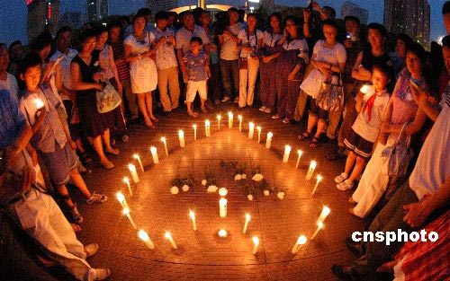 5月19日晚,新疆巴音郭楞蒙古自治州(簡(jiǎn)稱巴州)團(tuán)委在新疆庫爾勒市人民廣場(chǎng)舉辦共青團(tuán)員“點(diǎn)燃蠟燭、寄托對(duì)汶川大地震遇難同胞的哀思”活動(dòng),為汶川地震遇難同胞默哀。中新社發(fā) 確·胡熱 攝