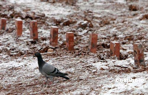 5月22日上午,一只灰鴿從遠處飛來,落在四川省什邡市洛水鎮(zhèn)李冰村西北的山坡上,這里埋葬了108名“5.12”地震遇難者,他們的墓碑用磚代替,墓碑上沒有名字,上面只有一個數(shù)字編號。 灰鴿久久佇立在這片灑滿石灰粉的墓地,良久后,它沿著第二排磚碑向南緩緩踱去,頭頸轉(zhuǎn)向墓碑……走到盡頭,然后它又側(cè)身轉(zhuǎn)向第一排磚碑,良久……當(dāng)記者慢慢地輕輕接近它時,它并沒有飛起,微微地昂起頭,少頃,“咕咕”地叫幾聲,回望了一眼墓地,飛走了……中新社發(fā) 張曉理 攝