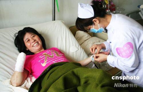 圖:汶川地震傷員沈陽治療盡顯堅強