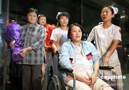 5月27日晚,四川大地震重災(zāi)區(qū)都江堰市被困50小時孕婦張小艷與父母乘飛機(jī)安全抵達(dá)烏魯木齊市,該市婦幼保健院派專人前往機(jī)場迎接,并將張小艷接入醫(yī)院免費接生。據(jù)了解,地震發(fā)生時,已有8個月身孕的張小艷和母親被掉落的天花板壓住被困50個小時,救援人員發(fā)現(xiàn)后對其實施救援,母子平安奇跡般生還。中新社發(fā) 劉新 攝