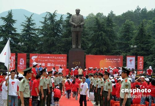 6月5日,奧運圣火湖南湘潭、韶山站傳遞結(jié)束慶典,在韶山的毛澤東銅像廣場舉行。儀式結(jié)束后,民眾仍久久不愿離去。中新社發(fā) 廖攀 攝