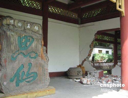 建于1982年的李白紀(jì)念館規(guī)模宏大、古樸典雅,藏有元、明、清李白著述版本80部、700冊(cè),明清以及近代、當(dāng)代書畫珍品2738件,是中國(guó)李白紀(jì)念、研究中心,被譽(yù)為“詩(shī)的王國(guó),藝術(shù)的殿堂”。在此次汶川大地震中,紀(jì)念館大部分建筑被毀。中新社發(fā) 肖青 攝