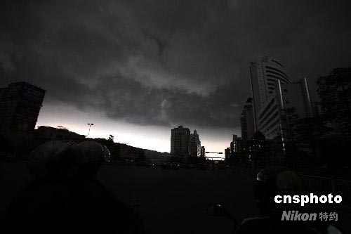 2008年6月16日下午,廣東佛山市禪城區(qū)上空烏云密布,白晝?nèi)缫梗S即降下暴雨。中新社發(fā) 春添 攝