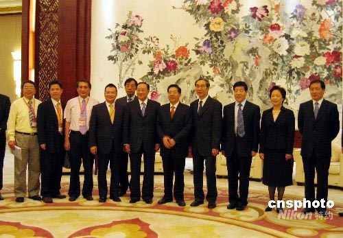 6月26日,國(guó)民黨副主席關(guān)中出席第三屆兩岸產(chǎn)業(yè)共同市場(chǎng)研討會(huì),第三屆兩岸產(chǎn)業(yè)共同市場(chǎng)研討會(huì)暨第四屆桂臺(tái)經(jīng)貿(mào)合作交流會(huì)為期三天。圖為廣西壯族自治區(qū)區(qū)委書記郭聲琨(右五)會(huì)見關(guān)中(右六)。中新社發(fā) 夏曉弘 攝