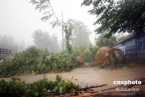 7月1日下午三點十分左右,安徽濉溪遭受龍卷風襲擊。龍卷風沿宿永公路一路卷過,從魯?shù)甏宓讲璋泊寮把赝镜凝垙R、張莊等村,東西約七公里、南北約三百多米。期間夾雜著蠶豆大小的冰雹,一抱多粗的大樹或被連根拔起,或攔腰折斷,部分民房和供電線路受損嚴重。中新社發(fā) 司俊杰 攝