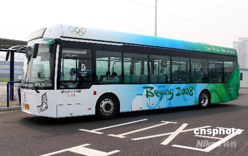 7月7日,專門為北京奧運會運動員、隨隊官員和注冊記者提供出行服務(wù)的1200輛奧運公交車,開始分批進入奧運村運行。這些車輛均為12米長的低地板無障礙空調(diào)新車,是尾氣排放達到歐IV標準的柴油車或純天然氣車、純電動車。圖為北京奧運純電力公交車。中新社發(fā) 富田 攝