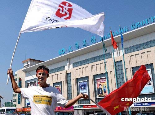 7月12日上午8時(shí)許,2008北京奧運(yùn)火炬在黑龍江省大慶市傳遞。眾多大慶市民前來(lái)為奧運(yùn)火炬吶喊助威。中新社發(fā) 濱海之光 攝