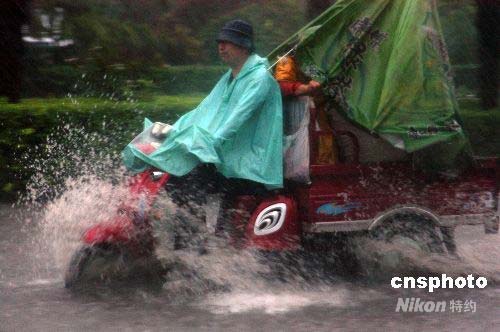 7月22日,安徽省亳州市突遭暴雨襲擊,造成市區(qū)許多地方積水嚴重,氣象部門于中午12時10分發(fā)布暴雨紅色預警信號。強降雨雖然驅(qū)走了些許悶熱,但卻使市區(qū)不少路面出現(xiàn)積水,給行人帶來很大困難。中新社發(fā) 張延林 攝