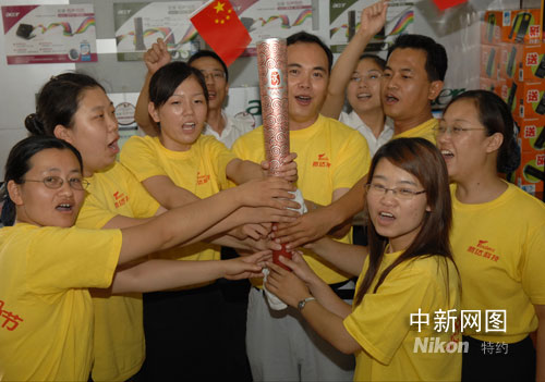 7月26日,河北滄州市某雷鋒志愿者組織的志愿者們親手觸摸到了火炬手曾傳遞過的“祥云”火炬,感悟火炬?zhèn)鬟f精神,激發(fā)干好本職工作的熱情,提高服務(wù)質(zhì)量,以實(shí)際行動(dòng)為奧運(yùn)加油。 王少華 攝