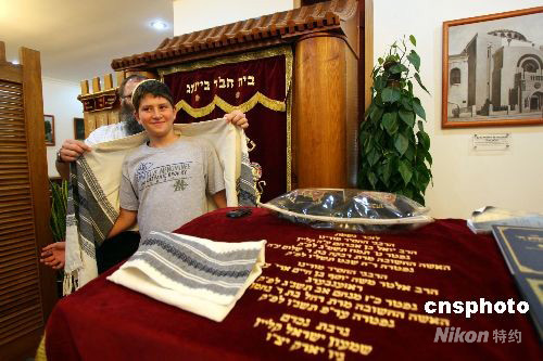 與父母一起到北京觀看奧運(yùn)會(huì)的13歲美國(guó)少年依斯科,8月12日在北京猶太人中心精心準(zhǔn)備即將到來(lái)的成人禮儀式,他表示能夠在中國(guó)度過(guò)這個(gè)特別的日子格外興奮。 中新社發(fā) 王瑤 攝
