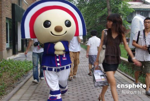 8月13日,中華臺北棒球隊吉祥物OPEN小將亮相北京,引起游客極大興趣和好奇。中新社發(fā) 九州 攝