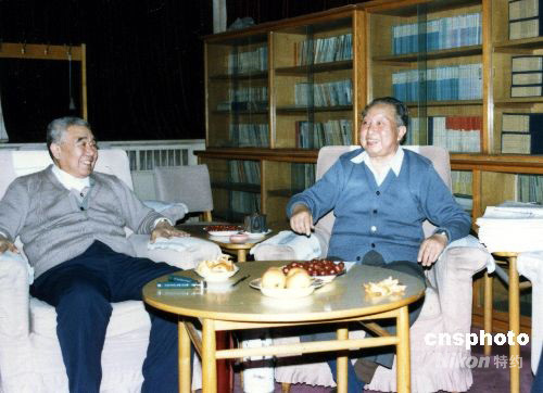 圖為1988年4月,華國(guó)鋒在住所高興地見(jiàn)到以往在湖南工作的老戰(zhàn)友。