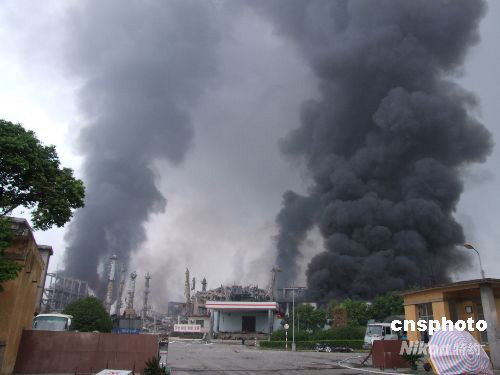 8月26日6時許,廣西宜州市郊的廣西維尼綸集團有限責任公司車間發(fā)生爆炸并引發(fā)大火,截至當日15時30分,醫(yī)院收治傷員增加至55人,死亡人數增至5人,失去聯系人員減至14人。 中新社發(fā) 楊繼武 攝
