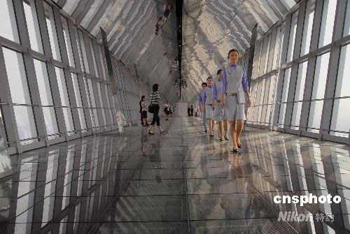 2008年8月28日,上海陸家嘴金融貿(mào)易區(qū)超高層綜合大廈“上海環(huán)球金融中心”落成啟用。金融中心樓坐擁101層高492米,在CTBUH(國際高層建筑與城市住宅協(xié)會)2008年公布的高層建筑排行榜的“最高使用樓層高度”和“最高樓頂高度”兩項中位居全球第一。上海環(huán)球金融中心擁有先進的辦公設(shè)施,有鳥瞰上海面貌的世界最高的觀光廳(地面高度達474米),能夠為國際性會議等活動提供優(yōu)質(zhì)服務(wù)的多功能會議設(shè)施等。上海環(huán)球金融中心頂部的觀光廳于8月30日正式對外開放,之后各類設(shè)施將逐步啟用。中新社發(fā) 海牛 攝