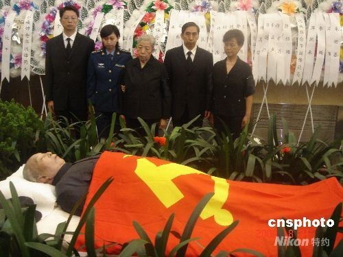 8月31日上午,原中共中央主席華國鋒遺體告別儀式在北京八寶山革命公墓舉行。華國鋒因病醫(yī)治無效,于8月20日12時50分在北京逝世,享年87歲。圖為華國鋒夫人韓芝俊(中)率子女在告別儀式上。中新社發(fā) 韓凱 攝