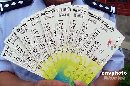 近日,北京海淀警方抓獲一向游客高價倒賣殘奧會門票的違法行為人王某,收繳鳥巢殘奧會田徑比賽通票10張。此案目前正在進一步審理中。中新社發(fā) 海宣 攝