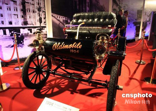 9月16日晚,通用汽車百年華誕慶典晚會在上海舉行,多款古董汽車在紅地毯上亮相,讓上海人目睹了通用汽車的經(jīng)典歷程。圖為1904年出產(chǎn)的奧茲莫比爾汽車,是世界上第一款大批量生產(chǎn)的汽車。中新社發(fā) 潘索菲 攝