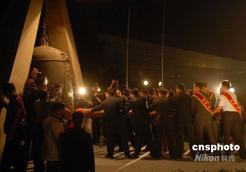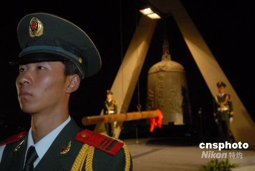 2008年9月18日晚九點(diǎn)十八分,遼寧沈陽(yáng)市在九一八事變事發(fā)地舉行隆重的撞鐘儀式。警鐘長(zhǎng)鳴,勿忘國(guó)恥。中新社發(fā) 孫海 攝