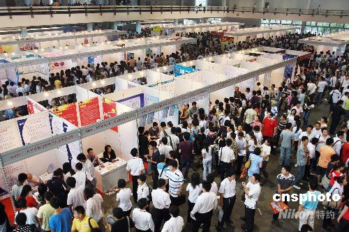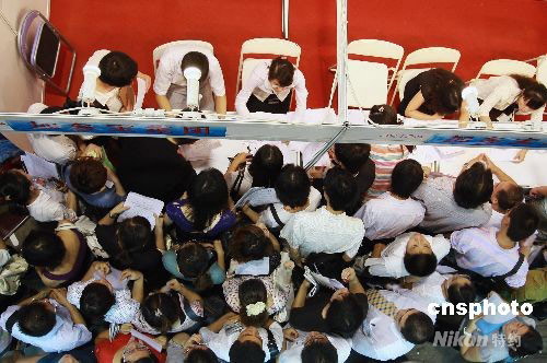 9月21日,北京奧運(yùn)會(huì)后首場大型綜合招聘會(huì)在中國國際展覽中心火爆開展,截至上午,招聘會(huì)已吸引了近2萬名求職者。此次招聘會(huì)是第29屆“共創(chuàng)未來”人才招聘會(huì),近600家用人單位提供了5000余個(gè)職位,招聘會(huì)將會(huì)持續(xù)到22日下午4時(shí),預(yù)計(jì)兩天內(nèi)將至少迎來近10萬名求職者。中新社發(fā) 鄭雄增 攝