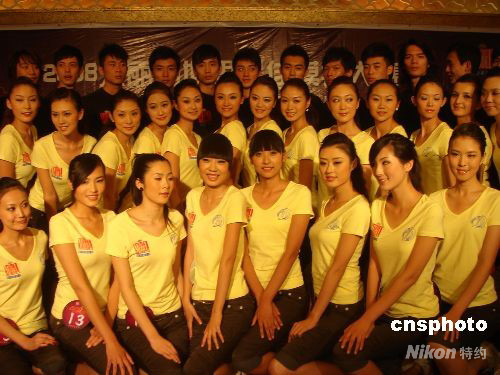 9月23日,入圍2008年世界最佳模特大賽中國(guó)區(qū)總決賽的50名男女選手,在天津與媒體見(jiàn)面。這些選手來(lái)自北京、天津、山東等20多個(gè)省、市、自治區(qū),其中女選手30名,男選手20名。中國(guó)區(qū)總決賽將于9月28日在天津東麗湖景區(qū)舉行。中新社發(fā) 孫志民 攝
