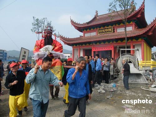 10月7日,農歷戊子重陽節(jié),也是西漢從創(chuàng)立到穩(wěn)定的重要將領、舞陽侯樊噲誕辰2250年紀念日,他的故鄉(xiāng)浙江德清上柏百姓舉行重陽廟會以示紀念,祈求國家繁榮昌盛,人民安居樂業(yè)、富裕祥和。中新社發(fā) 陳德明 攝