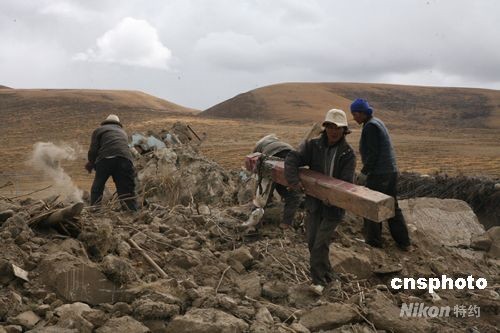 10月6日16時30分在拉薩市當雄縣境內(nèi)生6.6級地震,這次地震受災(zāi)較重的是當雄縣格達鄉(xiāng)和尼木縣續(xù)邁鄉(xiāng)。截至7日6時,格達鄉(xiāng)羊易村因地震死亡9人,重傷11人,輕傷8人,倒塌房間171戶共850間。尼木縣續(xù)邁鄉(xiāng)霍德村倒塌房屋20間,危房100間。圖為震災(zāi)之后,牧民已開始重建家園。中新社發(fā) 賈長飛 攝