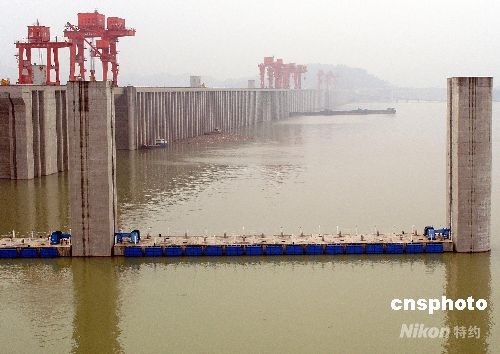 2008年10月7日,經(jīng)過近10天持續(xù)不斷地蓄水,三峽工程大壩壩前水位達到155.5米,并保持在該水位以上運行,實現(xiàn)了2008年汛后先期蓄水至156米水位的目標,是否向175米水位抬升尚需再檢測并研究三峽大壩運行情況、三峽庫區(qū)地質(zhì)災害狀況等之后再做決定。按設計要求,三峽工程分135米、156米、175米三個水位進行蓄水。此前,三峽工程已于2006年、2007年兩次蓄至156米水位高程。中新社發(fā) 劉君鳳 攝