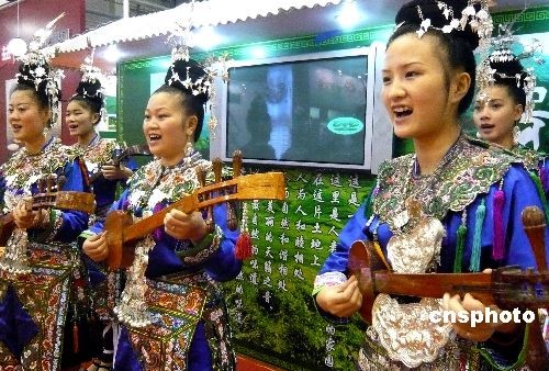 10月13日,正在北京舉行的第五屆中國國際茶業(yè)博覽會(簡稱第五屆茶博會)吸引眾多商家和參觀者,是次由中國商務(wù)部外貿(mào)發(fā)展局、中國土產(chǎn)畜產(chǎn)進(jìn)出口總公司聯(lián)合主辦的茶博會推出中國茶樣大巡展"活動、"有機"名優(yōu)茶評選、世界茶文明之旅以及豐富多采的茶藝表演大賽暨"世界茶文明之旅---中華茶藝之星"選拔大賽。圖為在茶博會上來自中國貴州參展團(tuán)的少數(shù)民族茶藝文化表演隊為參觀者表演當(dāng)?shù)孛褡甯栉琛V行律绨l(fā) 錢興強 攝