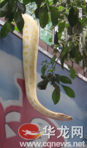 據(jù)江津區(qū)森林公安局一負(fù)責(zé)人介紹,這條蛇學(xué)名叫做黃金蟒,是一種變異蛇,屬于緬甸的引進(jìn)種,屬于國家的一類保護(hù)動物。(見習(xí)記者何青枚 通訊員楊偉)