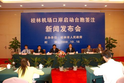 十月十六日,廣西桂林市人民政府在此間召開啟動(dòng)機(jī)場口岸臺(tái)胞簽注新聞發(fā)布會(huì),宣布從十月二十日起正式啟動(dòng)兩江國際機(jī)場口岸臺(tái)胞簽注點(diǎn),為臺(tái)灣同胞進(jìn)出桂林提供十分快捷便利的服務(wù)。中新社發(fā) 周利朔 攝