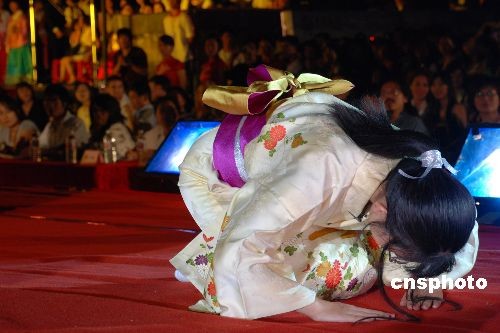 圖為日本留學(xué)生細井春香等人表演的服裝秀《和服韻》。