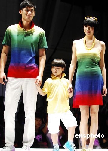 10月22日晚,2009春夏中國T恤流行趨勢發(fā)布暨“天然杯”第六屆國際T恤設(shè)計(jì)大賽作品展在上海舉行,該大賽吸引來自韓國漢陽大學(xué)、ESMOD國際服裝學(xué)院、萊弗士服裝學(xué)院等近百所高校的近3000幅作品。圖為模特展示院校T恤設(shè)計(jì)優(yōu)秀作品。中新社發(fā) 錢興強(qiáng) 攝