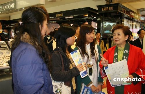10月31日,日本滋賀縣知事嘉田由紀(jì)子在湖南平和堂商場向消費(fèi)者推介滋賀縣的旅游資源。當(dāng)天,日本滋賀縣在長沙舉行了旅游推介大會,盛邀洞庭湖的居民到日本游覽琵琶湖。由于該縣一些主要景點(diǎn)都是模仿湖南的“瀟湘八景”而命名,引起了與會人員的強(qiáng)烈興趣。中新社發(fā) 鄧霞 攝