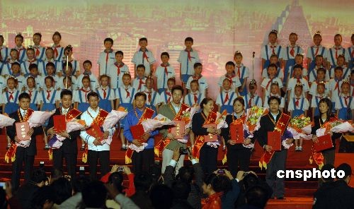11月2日是第二個重慶農(nóng)民工日,當(dāng)?shù)嘏e行“第三屆重慶十佳農(nóng)民工頒獎”儀式,集體表彰過去一年為重慶經(jīng)濟(jì)社會發(fā)展做出杰出貢獻(xiàn)的農(nóng)民工代表。圖為獲獎農(nóng)民工集體合影。中新社發(fā) 郭晉嘉 攝