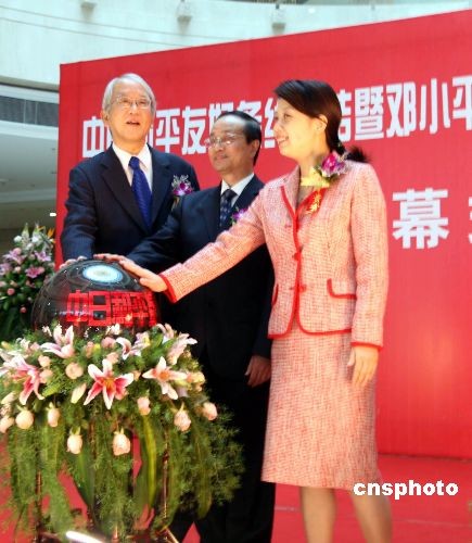 6日上午,由重慶市人民友好協(xié)會、日本駐重慶總領(lǐng)事館和重慶中國三峽博物館共同舉辦《中日和平友好條約締結(jié)暨鄧小平訪問日本30周年圖片展》在重慶開幕,以紀念中日兩國友好合作關(guān)系的歷史。圖為日本駐重慶總領(lǐng)事館總領(lǐng)事富田昌宏(左)、重慶市政協(xié)副主席陳萬志(中)、重慶市人民對外友好協(xié)會副會長王雯(右)共同啟動開幕球。中新社發(fā) 銀雪 攝
