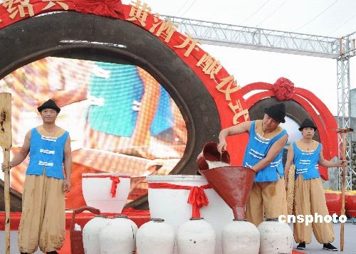 11月7日,2008中國(guó)紹興黃酒節(jié)在浙江紹興舉行。紹興是黃酒之鄉(xiāng),也是全球黃酒生產(chǎn)量最大的城市。目前全市有黃酒企業(yè)86家,年產(chǎn)量達(dá)到41.3萬(wàn)噸、年銷(xiāo)售額33.2億元,分別占全國(guó)的17.2%和35.6%。紹興黃酒行業(yè)擁有7個(gè)中國(guó)馳名商標(biāo)、4只中國(guó)名牌產(chǎn)品和6家中華老字號(hào)。今天展示的15家“紹興黃酒”冠名企業(yè),是其中的佼佼者,他們的總產(chǎn)量和銷(xiāo)售收入占據(jù)全市的90%。黃酒節(jié)期間,紹興將舉辦黃酒展覽會(huì)、黃酒開(kāi)釀儀式,酒類(lèi)趣味活動(dòng),黃酒品牌推廣文藝活動(dòng),黃酒品嘗活動(dòng)以及院士紹興行和一系列經(jīng)貿(mào)文化活動(dòng)等。中新社發(fā) 袁云 攝