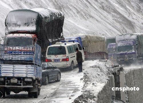 11月9日,新疆果子溝突降大雪,截止當(dāng)日17點(diǎn)30分,共有200余輛大型車輛、500多人被堵困此路段。據(jù)了解,國(guó)道312線高速公路(賽里木湖-果子溝)施工路段路面平均積雪2厘米,個(gè)別路段達(dá)到5厘米厚度,氣溫急劇下降至零下10攝氏度左右,部分路段雪融后路面結(jié)成一層薄冰,部分大型載重車輛行至此路段“趴窩”,造成交通不暢。目前,該地段經(jīng)過大批機(jī)械及人員緊張疏導(dǎo),交通已基本恢復(fù)正常。中新社發(fā) 彭傳哲 攝