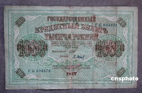 11月9日,一張1917年的俄國盧布現(xiàn)身山東濱州無棣。該盧布面值1000元,長21.3cm、寬13.2cm,票面上的字母已有些黯淡。