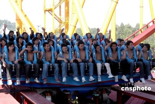圖:廣州“脫光勇士”挑戰(zhàn)愛情過山車