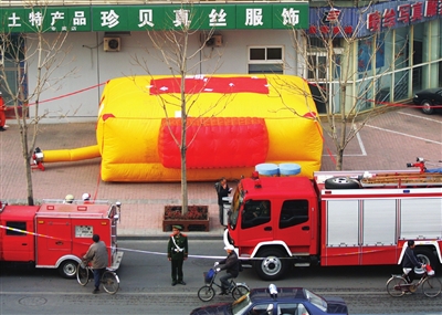 事發(fā)兩廣路與祈年大街路口西南角的珍貝大廈樓頂。記者9點(diǎn)多趕到時(shí),消防員已在樓下充起氣墊,四周都拉起警戒線,有民警及交警疏散圍觀群眾。該樓高6層,樓頂立有4個(gè)一米高的漢字招牌,兩名中年女子就扶著鐵架,面對(duì)面騎坐在“大”、“廈”兩個(gè)招牌的旁邊,此時(shí),兩人已在此坐了近兩個(gè)小時(shí)。據(jù)知情人透露,這兩名女子一名叫郭麗娜,吉林人,一名叫于秀敏,山東人,因錢在北京被搶而想不開,二人于近日認(rèn)識(shí)。一名大廈的工作人員稱,頂層的大門一直是鎖著的,不知道這兩名女子如何爬到那個(gè)地方。由于二人脖子上均拴著繩子,如果墜下很可能發(fā)生危險(xiǎn),且她們所處的位置有障礙物阻擋,給民警的救援工作帶來困難。