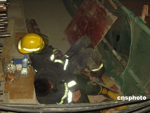 2008年11月15日下午,浙江省杭州市蕭山區(qū)風(fēng)情大道地鐵1號(hào)線施工現(xiàn)場(chǎng)發(fā)生重大塌陷事故,救援人員徹夜奮戰(zhàn)抽取積水。中新社發(fā) 王磊 姜越潮 攝