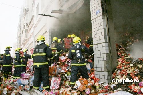 11月19日中午11點45分許,四川省廣安市 “康師傅”方便面廣安地區(qū)總代理的倉庫里價值60多萬的貨物被無情大火燒掉大半。事發(fā)后,廣安區(qū)公安分局110巡警大隊、市區(qū)消防大隊第一時間趕到現(xiàn)場,開展了滅火工作。據(jù)了解,失火的兩個門市面積大約有100平方米,里面裝了60多萬元的貨物,這次損失至少達40萬元左右。火災(zāi)原因正在調(diào)查之中。中新社發(fā) 廣宣 攝