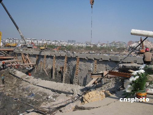 11月20日下午,一盆雪白的菊花靜靜地佇立在杭州地鐵坍塌事故現(xiàn)場,這是兩名杭州市民自發(fā)來到現(xiàn)場為悼念事故中遇難的民工兄弟而送上的。獻花的人說,他們身邊有這種意向的人還有很多很多。中新社發(fā) 江耘 攝