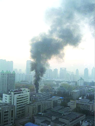 東南大學動力系的小陳當時正在做實驗,忽然聽到外面有人喊:“失火了!”他朝外面一看,電子系實驗樓上冒出一根“煙柱”,空氣中彌漫著一股焦糊味。小陳急忙跑下樓,往冒煙的位置跑過去,此時有不少同學紛紛往冒煙處聚集。