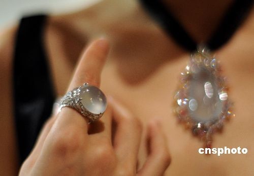 十二月初,某珠寶品牌在北京推出頂級(jí)翡翠珠寶展。展示的首飾均由翡翠制成,價(jià)格從幾十萬元到數(shù)百萬元人民幣不等。中新社發(fā) 廖攀 攝