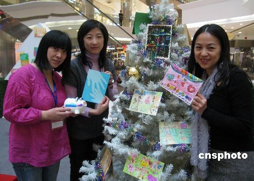 12月4日,一年一度滬上臺灣學(xué)子最大規(guī)模的“愛心義賣會”在上海南京路拉開帷幕;顒又鬓k方、擁有千名臺胞子女的上海中芯學(xué)校,將連續(xù)4天義賣1300余件臺灣孩童親手制作的愛心禮物,預(yù)估可募集約8萬元人民幣善款,悉數(shù)捐贈上海市紅十字會,用于救助大陸病童。圖為上海臺商太太展示自四川震區(qū)征集而來的臺胞家庭手繪新年賀卡等,參加愛心義賣。中新社發(fā) 許曉青 攝