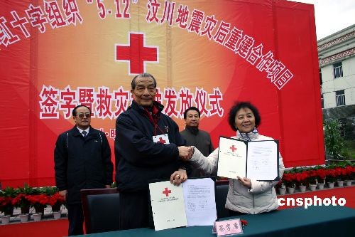 12月5日上午,海峽兩岸紅十字組織在“5.12”汶川大地震震中四川省映秀鎮(zhèn)簽署了汶川地震災(zāi)后重建協(xié)議。協(xié)議內(nèi)容涉及四川、甘肅和陜西3省地震重建項目,總投資金額15億新臺幣。中新社發(fā) 黃永莉 攝