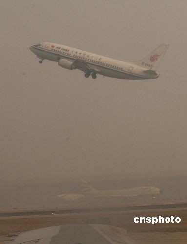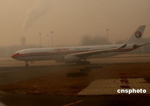 12月11日上午,北京首都國際機場周邊地區(qū)少量降雪,形成霧霾天氣,造成部分進出港航班延誤。中新社發(fā) 趙振清 攝