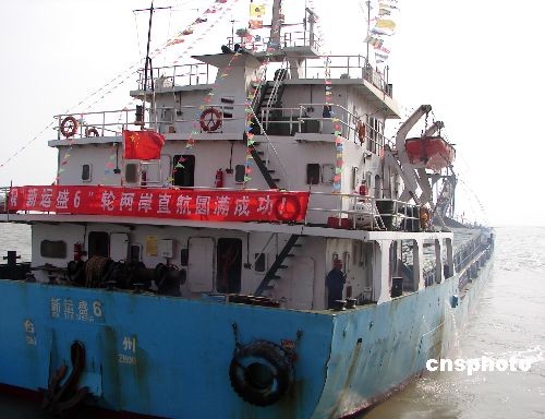 12月15日上午11時整,福建泉州開往臺灣本島的直航首航貨輪“成功七一”輪和“新運盛六”輪載著毛角石從泉州港起航,分別首航臺灣安平港和臺北港。中新社發(fā) 曾福志 攝