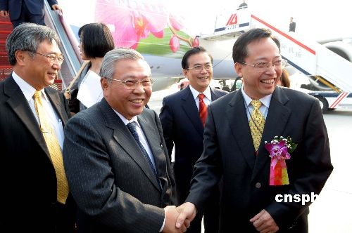 十二月十五日下午,一架蝴蝶蘭彩繪機(jī)降落深圳寶安國(guó)際機(jī)場(chǎng),中華航空公司成為兩岸常態(tài)包機(jī)中首家抵達(dá)深圳航點(diǎn)的臺(tái)灣航空公司,深圳市政府副市長(zhǎng)張思平在機(jī)場(chǎng)迎接華航董事長(zhǎng)魏幸雄一行。中新社發(fā) 陳文 攝